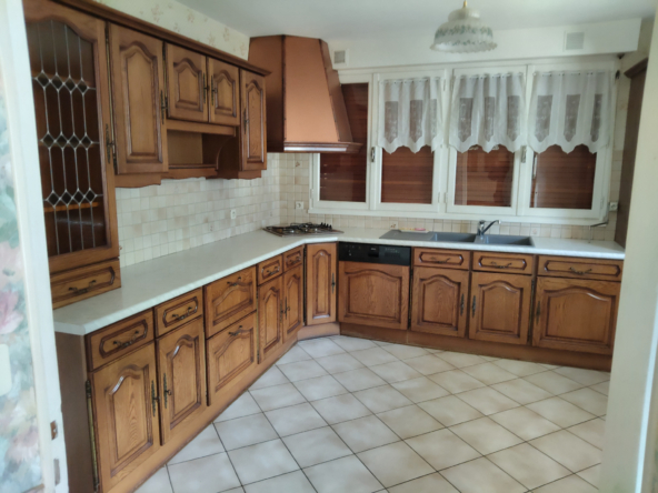 Maison de ville sur Sous-Sol de construction traditionnelle (1971) sur un terrain de 6 ares clos. Idéalement située pour une famille, elle s’étant sur près de 110 M2 habitable. L’accueil du 1er étage se fait par un vaste Hall d’entrée distribuant de manière fonctionnelle, une cuisine, un salon – séjour exposé Sud avec terrasse, 3 chambres et une salle d’eau coté Nord. Le sous-sol, sur la meme surface fait office de garage, buanderie, cave et annexe avec une salle de bain. Cette maison est saine, propre et bien entretenue, elle nécessite quelques travaux d’embellisement et d’amélioration énergétique. Le chauffage est au Gaz de ville avec radiateur. Bien disponible et libre de toute occupation.